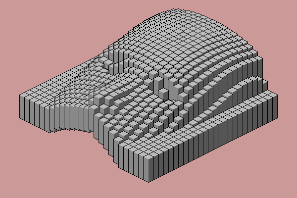 Isometric tiles and a 3d mesh of a face. Watch the Shockwave animation.